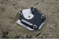 The extension prevents the motorcycle from collapsing on soft ground when parked on the side stand. Made entirely of stainless steel.