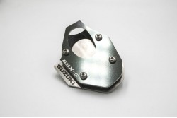The extension prevents the motorcycle from collapsing on soft ground when parked on the side stand. Made entirely of stainless steel and ABS/ASA, which stabilizes the stock footing inside.