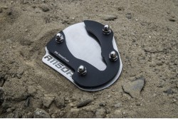 The extension prevents the motorcycle from collapsing on soft ground when parked on the side stand. Made entirely of stainless steel.
