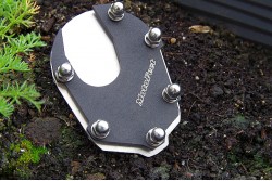 The extension prevents the motorcycle from collapsing on soft ground when parked on the side stand. Made entirely of stainless steel.